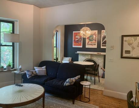 Stunning two bedroom + dining/office nook in South End brownstone. Original wide-plank pine floors, exposed brick, and a decorative cast iron stove + fireplace add a unique charm to this cozy space. South-facing windows usher in plenty of light while the bloom of tree-lined Worcester Street creates the feeling of a treehouse in the city. Large deck off of bedrooms with views of the South End/Back Bay. Plenty of closet space. Around the corner from excellent restaurants, bars, and cafes + an easy walk to the Orange and Green lines. Laundry in building. Pet friendly.