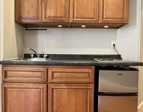 Beautiful Spacious Studio w/ Charming Detail and Modern Updates. Parlor level, Big Bow Windows, Lovely Dark Wood Accent Wall, Hardwood Floors. Renovated kitchenette, bathroom with ceramic tile and bathtub. Quiet. Renovated brownstone at the intersection of Beacon St and Park Drive. Steps to the Green C Line, convenient location for the Green Line B and D, as well as multiple bus routes! Walk to T, BU, Longwood, Fenway. Perfect for BU Students, right around the corner from campus! Laundry services available only a few doors down. Walk to Fenway and Kenmore for great shopping, restaurants, entertainment and more!