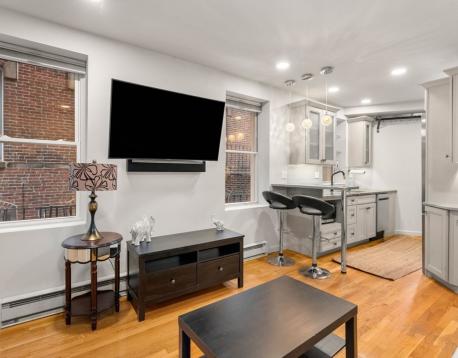Perfectly situated in the heart of Bostons historic North End, this partially furnished 2-bed, 2-bath apartment blends modern comfort with classic charm. The home showcases beautifully remodeled bathrooms and a stylish kitchen with stainless steel appliances, quartz countertops, generous cabinet space, and a breakfast bar. Gleaming hardwood floors flow through the open living area and bedrooms, while large windows fill the space with natural light. Enjoy the convenience of in-unit laundry with a washer and dryer included, along with curated furnishings that make this home truly move-in ready. Just steps from vibrant restaurants, cafs, and the waterfront, this North End gem captures the best of city living with effortless style and comfort. Available asap.