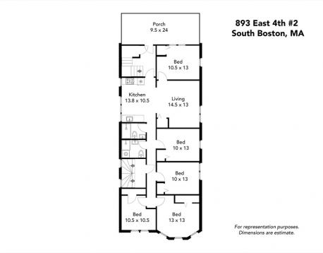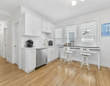 Live just blocks from the ocean and South Bostons sandy beaches in this phenomenal 5-bed, 2-bath apartment on the highly coveted East Side. Fully gut-renovated in 2023, this expansive home blends modern luxury with an unbeatable coastal lifestyle near Castle Island, M Street Beach, and scenic waterfront paths. The stunning white kitchen features gold hardware, quartz countertops, stainless steel appliances, and a classic subway tile backsplash. White oak hardwood floors run throughout, while oversized windows fill the home with natural light. Enjoy exceptional outdoor living with a massive private first-floor deck plus access to a large shared backyard, perfect for summer entertaining after beach days. Additional highlights include central air, in-unit laundry, window blinds, and generously sized bedrooms. Convenient to multiple bus stops, top restaurants, coffee shops, and the Seaport District. First, Last, & $500 security. Tenant to cover the tenant agent fee. Flexible move in date.