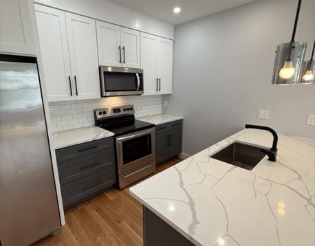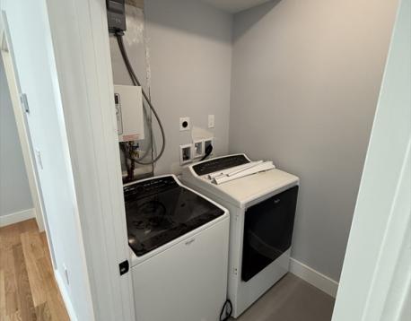Welcome to this newly built condo in East Boston! Located just a 1-2 minute walk from the Orient Heights Blue Line MBTA station, this home offers easy access to major routes, Logan Airport, and public transportation. The bright and airy unit features two spacious bedrooms and one full bathroom. The open-concept living space includes a fully equipped kitchen with electric appliances and a large island, perfect for cooking and entertaining. For added convenience, the unit comes with an in-unit washer and dryer. Tenants are responsible for their own electricity bill. 1 off street parking spot available for rent for an additional fee. Message listing agent for a video walkthrough.