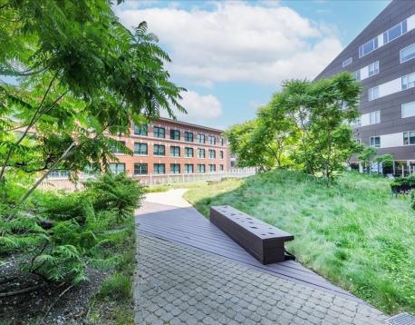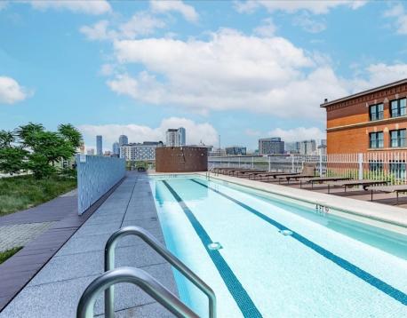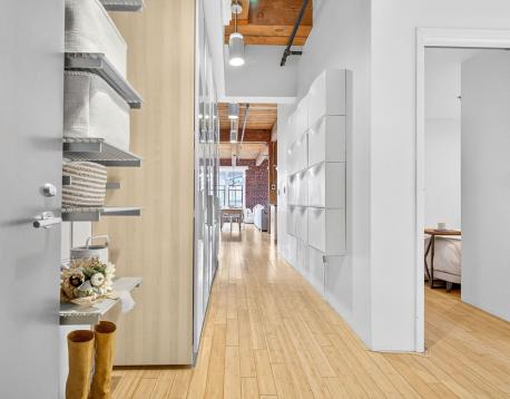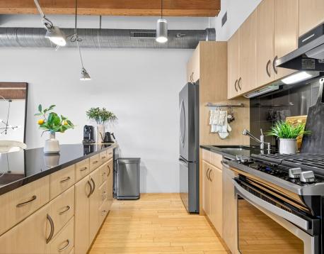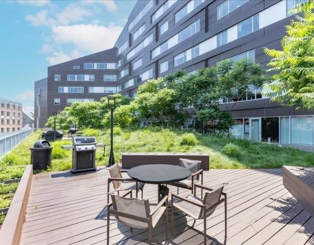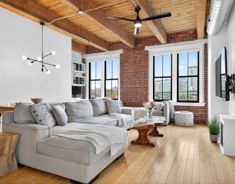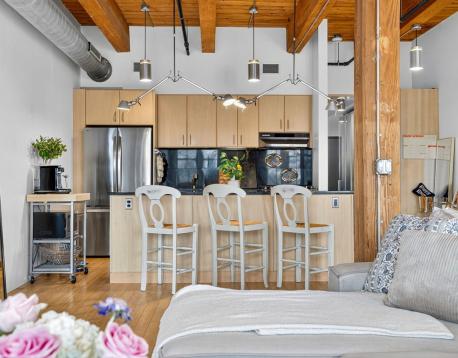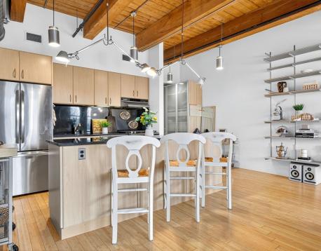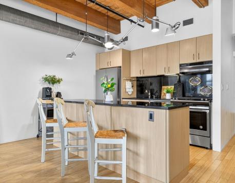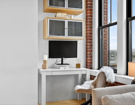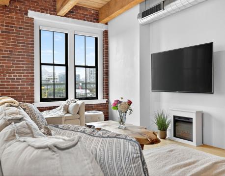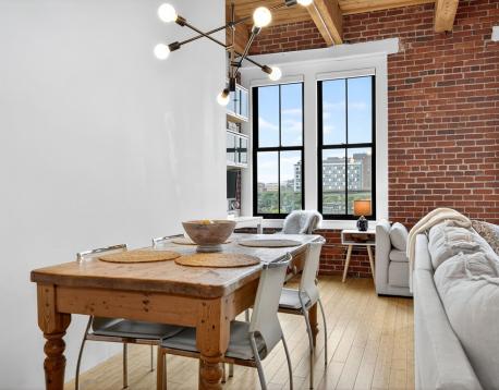 Experience style and sophistication in this stunning brick-and-beam home at the coveted Court Square Press. This classic industrial residence features an open-concept kitchen with sleek modern cabinetry, stone countertops, stainless steel appliances, and ample storage. Soaring ceilings and oversized windows fill the space with natural light, highlighting its distinctive character. The spacious living area allows for an office nook, dining table, and full seating setup. The bathroom offers hexagonal tile flooring, subway-tiled walls, granite vanity, and a soaking tub. Hardwood floors throughout and in-unit washer/dryer. Enjoy full-service living with 24/7 concierge, fitness center, rooftop pool and terrace with sweeping views of the city, grilling stations, media room, and on-site management. Prime location near the Seaport and across from the Broadway T.