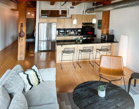 This one-bedroom FURNISHED loft at Court Square Press offers breathtaking views of the city. The spacious open floor plan features a breakfast bar, a generously sized living room with dining area, and ample space for a home office. Throughout the loft, you'll be charmed by the brick walls and exposed beams. The kitchen is well-appointed with gas cooking and elegant granite countertops. The bedroom includes two sizable closets, providing plenty of storage. Additional amenities include central air conditioning and in-unit laundry. Nestled within the esteemed Court Square Press condominium complex, this residence is highly sought after in Boston. Residents benefit from a 24/7 concierge service, a fitness center, a pool, a media/screening room, and an expansive urban oasis featuring gas grills for delightful summer barbecues. Conveniently, Broadway Station across the street, with a selection of restaurants.