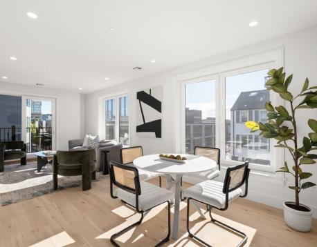 Available now, 1/1 or 2/1! Introducing 90 A Street, a beautifully crafted new construction condo offering 1,209 square feet of modern living space on South Bostons vibrant West Side. This thoughtfully designed unit features 2 bedrooms plus a versatile bonus room ideal for a home office, fitness area, or creative space, and 2.5 bathrooms with high end finishes throughout. Enjoy direct elevator entry into this stylish home featuring hardwood floors, stainless steel appliances, quartzite countertops and a spacious double vanity in the primary. Step out onto your private deck through sliding glass doors off the living room, perfect for relaxing or entertaining. The building includes deeded parking straight to your elevator access, combining convenience with contemporary style. Perfectly situated steps from The Broadway Red Line T-stop and the best restaurants and shops in South Boston, this residence is on the border of the South End and Seaport District, offering an ideal urban lifestyl