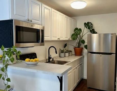 Two bedrooms, one bath, and a kitchen living room combo on the first floor with a private entrance. This unit offers an updated kitchen with new cabinets, countertops, a microwave, a washer, a dryer, and vinyl floors. It is a great location, only a few blocks from the Airport Train Station, Greenway Park, and all other amenities that East Boston offers.
