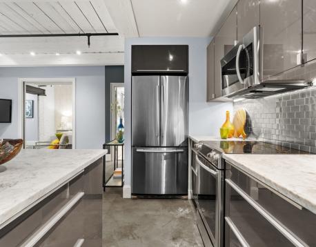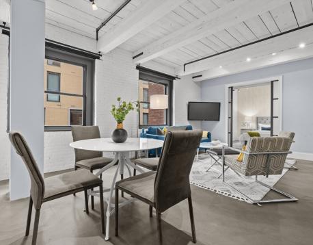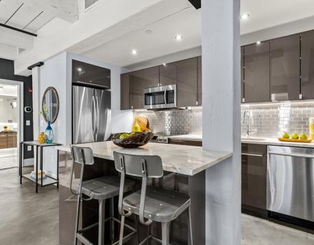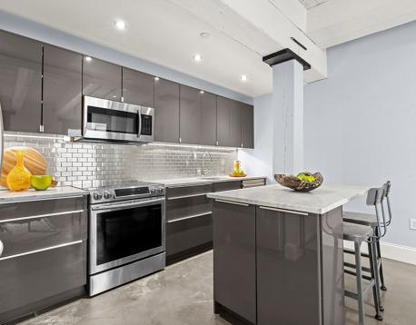 The 1850 Lofts were once home to a historic piano factory, Unit #303 now strikes a new chordblending industrial heritage with modern luxury in the heart of Bostons vibrant South End.Reimagined in 2016, this stylish loft features soaring 10-foot ceilings, exposed beams, original painted brick, and polished concrete floorsechoes of its artistic past meet contemporary design. The open-concept layout is perfect for entertaining, anchored by a stunning kitchen with lacquered cabinetry, honed marble countertops, and stainless steel appliances. Frosted glass pocket doors lead to a private bedroom and versatile alcoveideal as a dressing area or home office. The bathroom is sleek and spa-inspired, with high-end fixtures, statement lighting, and a bold walk-in shower. A dedicated utility closet houses in-unit laundry, and oversized tilt-in windows bring in natural light while offering easy maintenance.Located in a professionally managed, pet-friendly elevator building with 60 units.