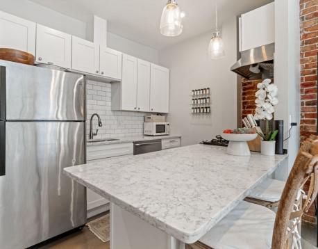 AVAILABLE January 1st - Newly renovated 2 bedroom apartment located on one of the most desirable streets in the South End. Brand new kitchen with custom cabinets and beautiful Caesarstone countertops. Newly updated bathroom features gorgeous marble floors and a subway tile bath/shower. Large master bedroom has abundant closets and additional storage. Second bedroom is big enough for a queen size bed or makes a perfect office/guest room. New hardwood floors throughout. Full sized laundry located in unit. This home is bright and sunny and features high ceilings with recessed lighting in every room! Enjoy the charm of a South End row house with with that brand new home feeling. Heat and snow removal included in rent. NO PETS ALLOWED PER ASSOCIATION RULES.