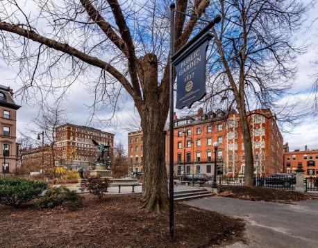 Rare opportunity to live beside the Public Garden in a magnificent 1BR + office spanning over 1,200 sq. ft. in a professionally managed elevator building. Generously proportioned rooms with soaring 13-ft ceilings and exquisite period details throughout retain the timeless elegance of Beacon Hill. The grand, ballroom-style living room, featuring an original fireplace and floor-to-ceiling arched French doors, creates an ideal setting for entertaining. The sense of space continues into the large bedroom, highlighted by custom millwork, a second fireplace, and sunset views through a glass-paned window. A well-appointed kitchen with abundant storage and a dishwasher, along with an updated bath and on-site laundry, complete this exceptional and seldom-available residence. Unbeatable central location with easy access to the shops and restaurants of Beacon Hill and the Back Bay. Can be offered FURNISHED as well -ask agent for details. HEAT, HOT WATER & ELECTRICITY INCLUDED. No pets.