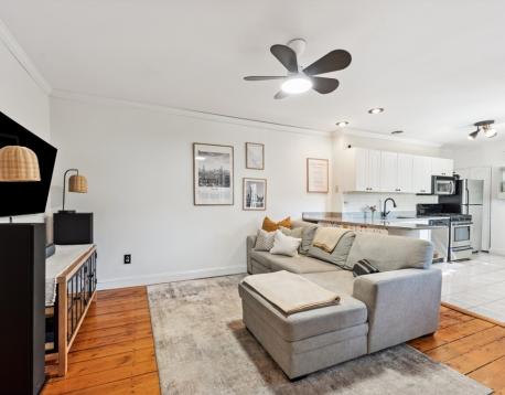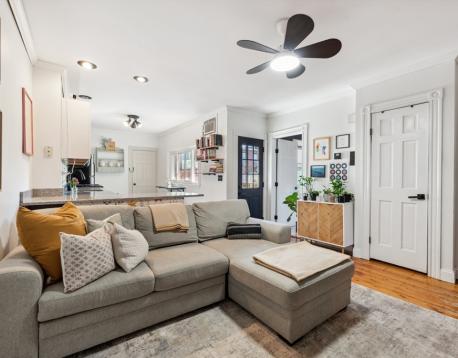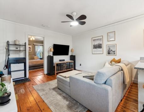 Charming and sun-filled, this 1+ bedroom, 1-bath home offers 653 sq. ft. of comfortable living in the heart of Charlestown. The open living, dining, and kitchen layout features hardwood floors, stone countertops, and stainless-steel appliances. Step out from the living area onto a large private rear deck, perfect for morning coffee or entertaining.The spacious bedroom includes a custom-shelved closet, while the versatile bonus room is ideal for a home office or guest space. Additional highlights include in-unit washer/dryer and extra basement storage. Conveniently located near Waverly Kitchen & Bar, neighborhood parks and playing fields, coffee shops, a local deli/convenience store, and public transportation.