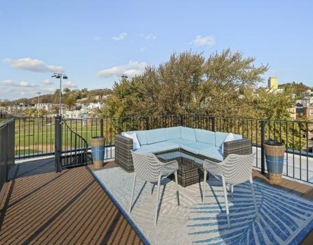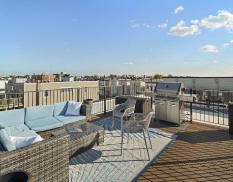 AVAILABLE FOR AN AUGUST 1, 2026 MOVE IN DATE - PENTHOUSE LEVEL | Brand New Construction in 2020, this 2 bedroom, 2 bathroom condo in East Boston has stunning high end finishes. Featuring two private outdoor spaces, large oversized terrace off the main living space and a private roof deck with beautiful views and a gas grill to enjoy during the warmer months. The open concept kitchen offers high end Fisher Paykel appliances, custom cabinetry, and a large island that includes a separate beverage fridge, and beautiful pendants. Additional features include built in speakers, central AC/Heat, Washer/Dryer in unit, plus a large additional storage unit. Moments away from Constitution Beach and the Orient Heights Blue Line Station, this home features all the amenities one could ask for. Pets negotiable. AVAILABLE FOR AN AUGUST 1, 2026 MOVE IN DATE.