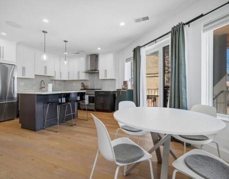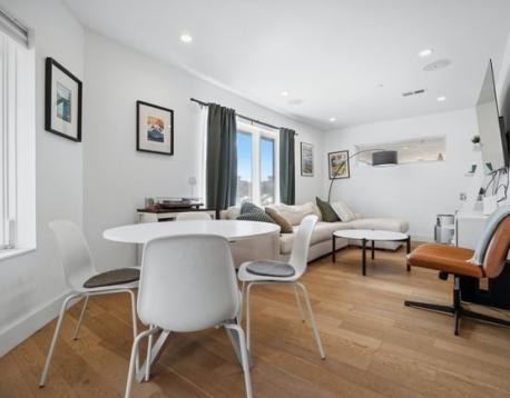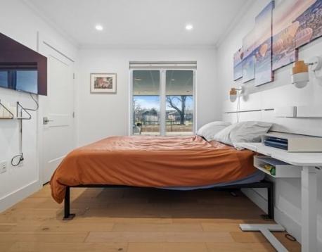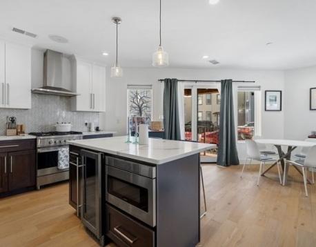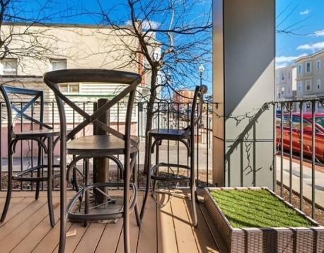 Welcome to this first-floor residence at The Tess. This 2-bedroom, 1-bathroom condo offers a thoughtful layout with modern finishes throughout. The kitchen is surrounded by windows, bringing in an abundance of natural light and flowing seamlessly into the living area. A covered deck just off the main living space extends the home outdoors. Both bedrooms are well-proportioned, with the primary offering two closets, while the second bedroom comfortably accommodates a full-sized bed. The bathroom features a double vanity and tiled walk-in shower. Two parking spaces are included. Conveniently located near Constitution Beach and the Orient Heights T stop, this home offers easy access to both the city and the waterfront.