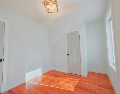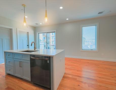 Built in 2022, this modern sixth-floor residence offers 999 sq ft of thoughtfully designed living space. The open-concept layout features two spacious bedrooms, 1.5 baths, hardwood floors, central A/C, and in-unit laundry. Enjoy your own private balcony and an exclusive roof deck with city and water views perfect for relaxing or entertaining. The kitchen shines with stainless-steel appliances and sleek cabinetry, while large windows fill the home with natural light. Includes one off-street parking space and elevator access. Located in East Bostons desirable Eagle Hill neighborhood, near Bus station, restaurants, cafs, and waterfront parks.
