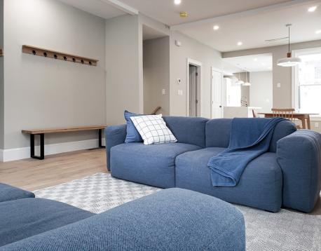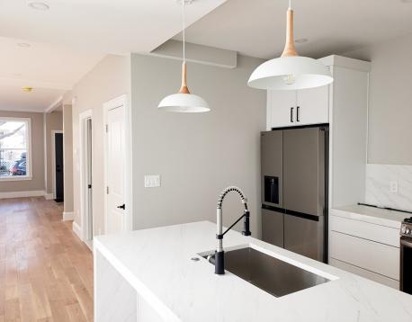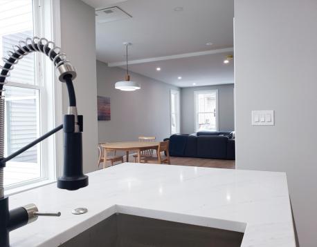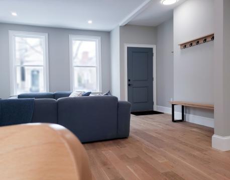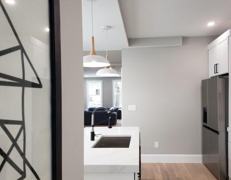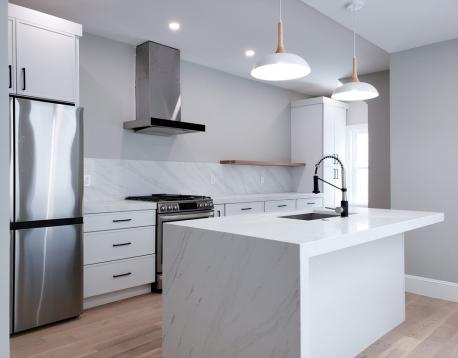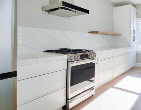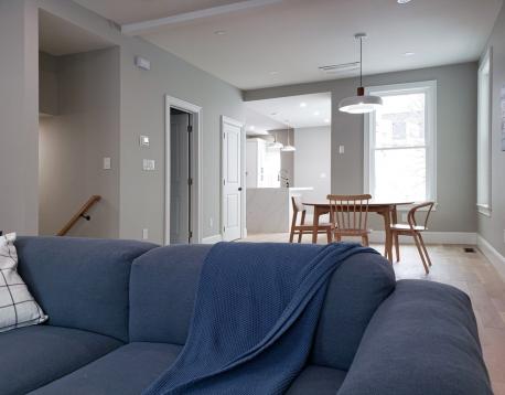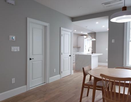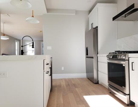 AVAIL 6/1: Enter into this beautifully gut-renovated 1,502 sq ft private-entry bi-level residence in Eagle Hill, where thoughtful craftsmanship meets serene, Scandinavian-inspired design. Bathed in natural light, the expansive living/ dining area welcomes you with clean lines and white oak flooring, while a sleek full bath with a custom honed stone shower adds a touch of spa-like luxury. The rear kitchen is a true showpiecefeaturing stainless steel appliances, a striking quartz waterfall island, generous pantry space, and direct access to a private patio and shared deck, perfect for effortless indoor-outdoor living. Downstairs, large egress windows invite in soft garden views, illuminating a cozy family room, full bath with tub, and convenient laundry area. The spacious primary suite offers a tranquil retreat with its own en suite bath, while the second bedroom comfortably fits a queen. Central AC, energy-efficient systems, and a peaceful minimalist aesthetic just 15 min to downtown!
