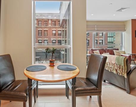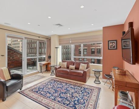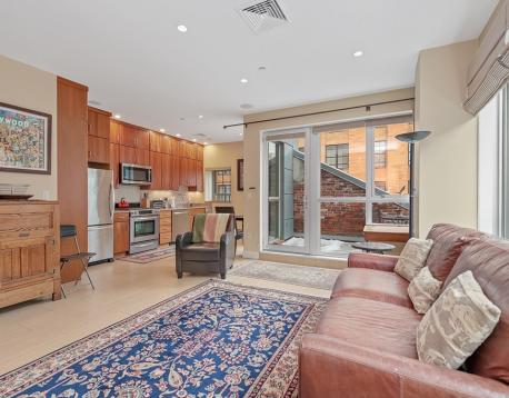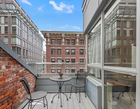Furnished One-Bedroom with Private Outdoor Space in Boston Waterfront. This rarely available floor plan is a unique sun-filled home with floor-to-ceiling windows in the open-concept living area with direct access to a private deck. A modern kitchen that features stainless steel appliances, granite countertops, custom cabinetry, and dining area. A Spacious living room with oversized windows and TV. The bedroom features classic exposed brick, double windows, and a closet. Tile and granite bath with tub/shower. Hardwood floors throughout and in-unit laundry. Broadluxe is an elevator building with on-site superintendent, ideally located next to the Rose Kennedy Greenway and Boston Harbor, moments from the North End, Faneuil Hall, Seaport, FiDi and Harbor Walk. Inquire with listing agent for parking options. Avail 3/15 or 4/1