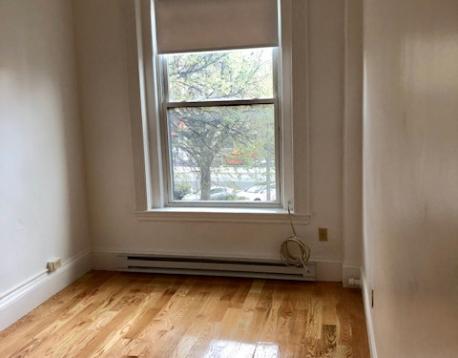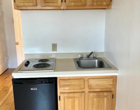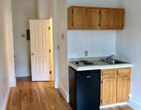 2nd floor front facing furnished studio with a private bathroom and new kitchenette cabinets overlooking Beacon Street - bright, sunny, high ceiling and new carpeting!