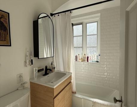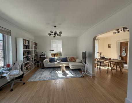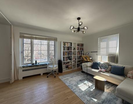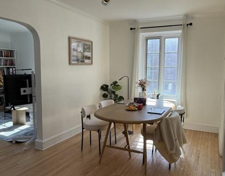 Spacious and bright 950 sq ft 1-bed split offering high ceilings, hardwood floors, and abundant natural light throughout. The flexible layout features an arched doorway with a ceiling-mounted curtain, allowing the living area to function as a second bedroom. Kitchen appliances and bathroom were tastefully updated in 2024. The bedroom is privately set on the opposite side, overlooking a quiet courtyard. Common laundry in building. Excellent locationwalking distance to Boston University, Lawrence School, and Coolidge Corner, with easy access to the Green Line (C & D). Garage parking available for $320/month.