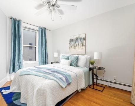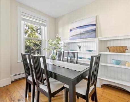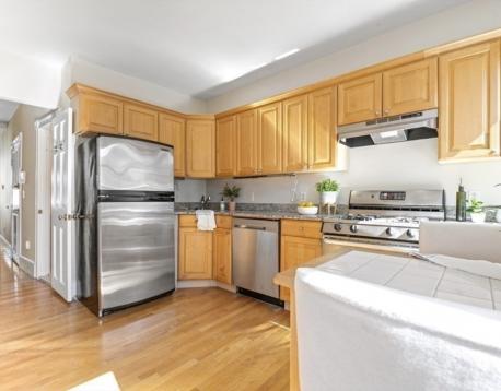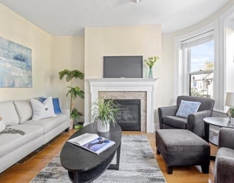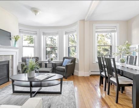 Bright and well-kept 2-bedroom, 1-bath apartment in a classic brownstone in the heart of Brookline Village. The unit features a sun-filled living and dining area with bay windows, custom built-ins, and an electric fireplace that adds a nice focal point to the space. The updated eat-in kitchen includes granite countertops, stainless steel appliances, and plenty of cabinet storage. Both bedrooms offer good natural light, hardwood floors, and closet space.Private laundry and additional storage are located in the basement. Excellent location just moments from Brookline Village, Coolidge Corner, and the Longwood Medical Area, with easy access to the Green Line, local parks, restaurants, shops, and hospitals.