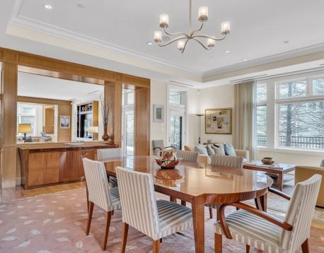 Spectacular 3,396 square foot residence at Longyear at Fisher Hill, a beautifully landscaped 8-acre estate designed by Frederick Law Olmsted. Beautifully customized three bedroom, three and one-half bathroom home designed by noted architect Doreve Nicholaeff. Offers seldom seen blend of modern elegance and luxury living. Open, airy, light-filled floor plan with 10-foot ceilings ideal for casual entertaining and easy living, custom chef's kitchen by Kochman, Wright & Haigh with top-end appliances. Custom cabinetry and millwork throughout. Spacious (22x18) bedroom with marble tiled bathroom has custom crafted cabinetry and well fitted expansive walk-in closet. All three bedrooms have bathrooms en-suite. Private terrace and patio off living room and family rooms. Two zones of HVAC, laundry in unit, 2-car garage parking, extra storage. First-class amenities, including 24-hour gated security services, swimming pool renovated in 2025, and well-equipped fitness center. A rare find.