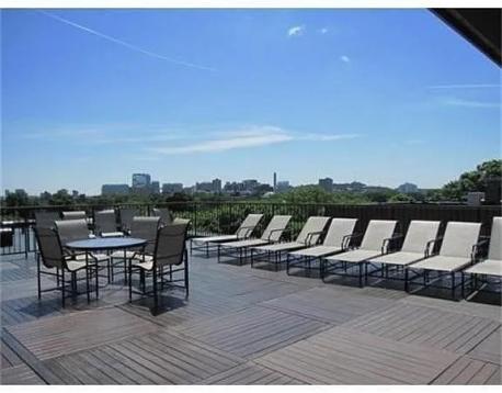 Two bed, two bath, corner end unit at Amory House in Coolidge Corner with a large private balcony overlooking Pleasant St. The large open combined living and dining area allows for a variety of different layouts. Both bedrooms are large enough for king sized beds and feature spacious closets. The professionally managed association features a common seasonal rooftop pool, outdoor terrace, fitness room, sauna, and common recreation space for residents to enjoy. This unit also comes with one deeded indoor garage parking space and basic furnitures. This property is located minutes from the Green line, both B and C lines, shops and restaurants. Don't miss this unit.
