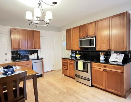 Available 7/1, NO FEE! Bright and airy LEAD-FREE 2 BR on the first floor with private rear entrance. Located in the Lincoln School district. CENTRAL A/C! Updated eat-in kitchen and bath, hardwood floors throughout. Private laundry and storage unit in basement, bicycle storage in shed. Great location close to parks, eateries, public transportation, and Longwood Medical Area. Tenant pays for utilities. No pets or smoking. Direct access parking spot for compact car available for rent. Photos from prior listing.