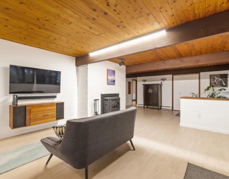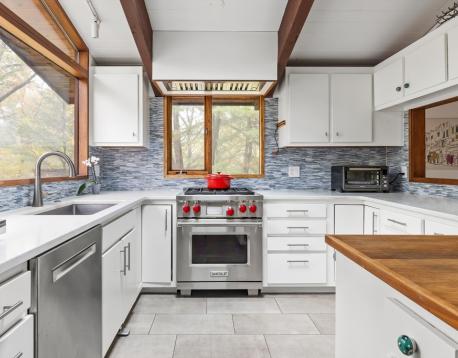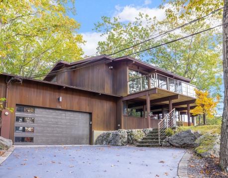 AVAILABLE FOR SHORT TERM RENTAL - Perfectly sited on a gentle hillside along one of Chestnut Hills most picturesque streets, this four-bedroom, two-and-a-half-bath single family residence masterfully blends architectural character with thoughtful modern updates.The open-concept design showcases light-filled spaces, beamed vaulted ceilings, generous room sizes, and warm, inviting details throughout. The updated kitchen is a chefs dream, featuring gas cooking on a WOLF stove and custom cabinetry. The spacious living room opens through sliding glass doors to a large deck with spectacular viewsideal for entertaining. Cozy up by the pellet stove in the family room this Winter. Take advantage of the direct entry, two car garage for parking and additional storage. This home can be delivered vacant or partially furnished.