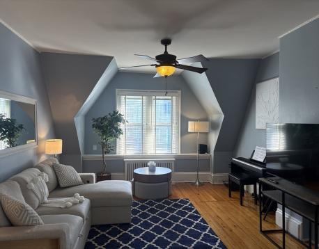 Furnished, sun-filled 2 bedroom , 0.2 miles to Brookline Village , shops , restaurants, D line. . Easy access to Longwood Medical hospitals. High ceilings, wide plank hard wood floor, modern kitchen with quartz countertops and stainless appliances, modern bath with glass shower, in unit laundry, heat and hot water inc. Unit is fully furnished. The beautiful unit can be rented by the month at seasonally adjusted rates.