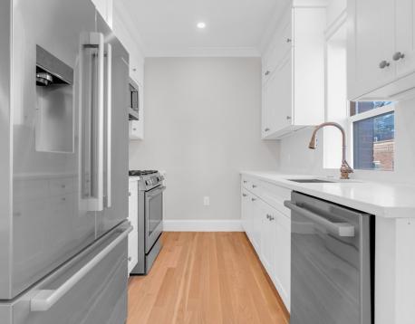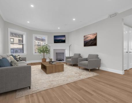 This sun-filled 3-bedroom, 2-bath residence features central air conditioning, herringbone hardwood floors, and a thoughtfully designed open layout that blends elegance with everyday functionality. The luxury kitchen is outfitted with high-end finishes and modern cabinetry, flowing seamlessly into the living and dining areasperfect for both entertaining and daily living. Both luxury baths are finished with contemporary design. Additional highlights include a Butterfly intercom system for enhanced convenience, generous closet space, and all-new systems throughout.