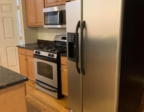 This duplex apartment has lovely hardwood floors throughout the 1st floor, carpeted finished basement perfect for family room, spare bedroom, home office, etc. Remodeled kitchen, featuring stainless steel appliances, granite counters, and breakfast bar. Large open floor plan living/dining room perfect for entertaining, with large bay windows. Master En-suite has a large marbled tiled walk-in shower and 2nd full bath features a Jacuzzi whirlpool tub.Tenant pays all utilities.