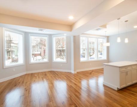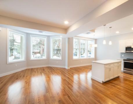 Fully gut-renovated 3 bed, 2 bath on a quiet tree-lined street in Coolidge Corner. This expansive, sun-filled home offers an open layout with oversized bay windows and 16 new double-pane windows throughout. The custom kitchen features quartz countertops, artisan glass tile backsplash, white shaker soft-close cabinetry, spacious island, and high-efficiency stainless steel smart appliances. Three generous bedrooms include custom closets; the primary suite offers double sinks and a large walk-in closet. Designer baths, recessed lighting, and white oak floors elevate the space. In-unit LG laundry, Carrier high-efficiency HVAC with smart controls, new insulation, plumbing, and electrical. Pet friendly, professionally managed. Additional designated storage in basement. 3D tour available. Available 9/1/2026.