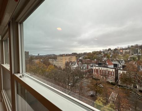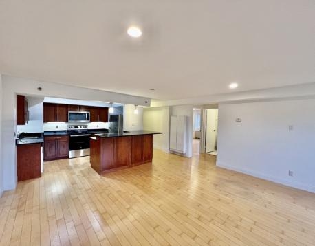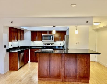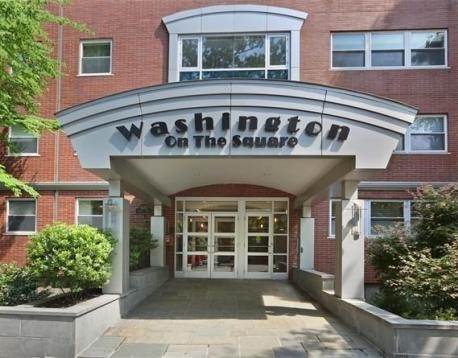 Corner unit and Southeast facing 2-bedroom 2-bathroom condo in a renovated building of Washington on the Square. Just completely professionally re-painted. On the high 10th floor with elegant flows and throughout hardwood floors, this unit has a beautiful oversized living room with big windows overseeing city views far and near. Modern granite cherry kitchen has a breakfast peninsula, extra storage and new refrigerator. Both sunlight filles and spacious bedrooms are in comfortable size to live and entertain. Complex offers new exercise room, new hallways, lobby and much more. Ideally located in the most-sought location in Brookline, its a "Walker's Paradise" to many places including Coolidge Corner shops and restaurants. Easy transit to both Boston University and Boston College via public transportation. Heat, hot water, one deeded car garage parking and many other amenities are included in the rent.