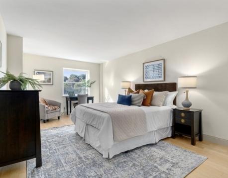 This oversized South-facing 8th fl condo in the heart of Washington Sq is flooded w/light & has spectacular views. Garage parking w/direct elevator access, heat,hot water & extra storage are included in the rent. Featuring an open floor plan perfect for easy living & entertaining, wood flooring throughout,kitchen w/custom cabinetry, granite counters, stainless steel appliances & a breakfast bar w/ample built-in storage. The huge bedroom offers plenty of space for adesignated office area, There is generous closet space throughout the unit + a large storage bin. The association is prof managed, keeping the building impeccable.Amenities include part-time concierge, fitness room & a large beautifully landscaped outdoor area in the back. About half a mile to Coolidge Corner or ClevelandCir, 2 miles to Longwood Med Area & Fenway, quick 3 miles to Copley & Cambridge. both C & D trains, bus lines, parks, major supermarkets, best coffee shops & diningare right outside your door.