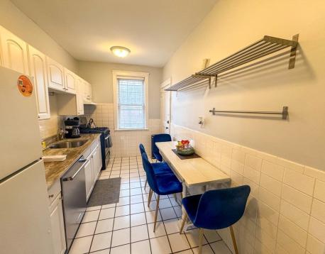 Furnished, Renovated 1Bed, Steps to Coolidge Cor Shops, etc -- FULLY FURNISHED, SHORT OR LONG-TERM, UTILITIES, WIFI & LIVE STREAMING TV INCLUDED, WALK TO LONGWOOD MEDICAL: BOSTON CHILDREN'S, BI, BETH ISRAEL, DANA FARBER. Lower level renovated one-bedroom unit found steps to Coolidge Corner's shops, restaurants, cafes, movie theater, boutiques and Trader Joe's. 3/4 mile to Longwood Medical Hospitals, step outside and hop on the C Green line trolley for a short ride into Boston, Boston University, Fenway Park and other destinations.Fully furnished one bedroom features high ceilings, a renovated eat-in kitchen with granite countertops and cherry cabinetry, a sleeper sofa, desk and 55" flat screen found in the living room. The bedroom offers a Queen bed and a second TV. Modern white tiled bath complete this home away from home. Coin-op laundry located across the hall. (WSR Broker of Record - Adele Lurie)