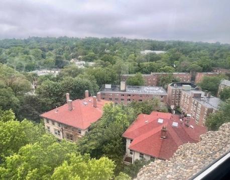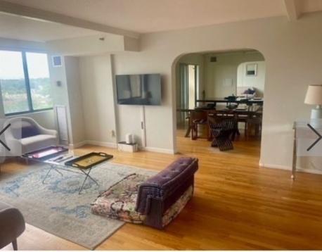 Pre-Spring Market Reduced Price!!! Smartly renovated TRUE 2-Bed/2-Bath Condo at Luxury Regency Park with GARAGE PARKING, 24 HR Security, Roof Deck and Year-Round POOL (covered)!! An extraordinarily bright, high-floor corner unit offers sweeping South Westerly views from every window w/ loads of natural sunlight. Hardwood Floors, Modern Kitchen & 2 Full Baths. Glass Slider opens to Private Deck off Dining Room. *Abundance of deep closets in Foyer & Bedrooms. *2- Zone Central Air & Heat. Enjoy a Carefree Lifestyle at Brookline's most desirable full-amenity complex. INCLUDED: 24 Hr Concierge, 4-Season Heated Swimming Pool, Garage Pkng, Guest Pkng, Designated Storage, Gym, Clubroom, Library and Common Roof Deck with panoramic views! Laundry Room on each (15) floor. Wonderful pied-a-terre for the urban or medical professional with EZ access to Longwood Medical Hospitals & Downtown Boston. *Live amid Washington Square's famous dining/shopping scene. AVAIL NOW!!