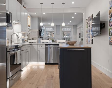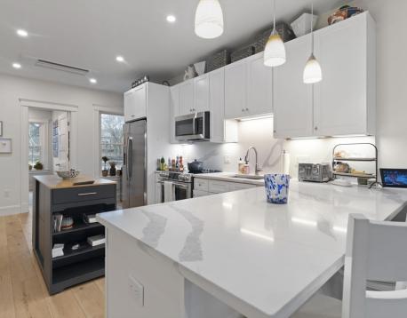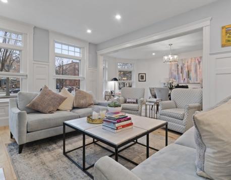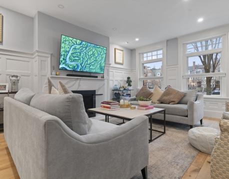 Gorgeous 3 bed, 2 bath unit on Beacon Street available June 1st. This spacious unit exhibits high ceilings, wainscoting, a grandfathered-in gas fireplace and large gleaming windows letting in an abundance of light. The vast entryway leads to a generous dining room attached to the living area and kitchen. Kitchen offers brand new stainless steel appliances, including an induction range, quartz countertops, and aesthetic under-the-counter lighting. Private laundry room off of the kitchen including top of the line washer and dryer. 2 spacious bedrooms and a 3rd that can be used as a smaller bedroom or office space. The entire unit recently (2024) underwent a full renovation with complimenting additions including built in air conditioning, impressive water pressure, and recessed lighting. 2 (tandem) parking spots included in the rent featuring electric charging stations! This unit is along the Green line close by shops, restaurants, parks and Runkle Elementary School.