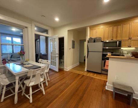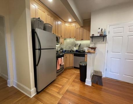 Washington Sq- Brookline three bedroom two full bathroom. Pick up the T just one block away. Fully applianced kitchen with stainless steel appliances and gas stove. Tons of closet space! Hardwood floors throughout. Cat friendly. Available 9/1.