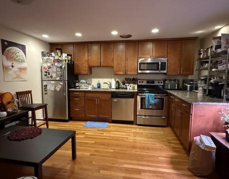 1bedroom split. Can be used as 2 bedroom with no real living room (as photoed) or 1 bed with living room and eat in kitchen. Renovated kitchen and bath. H/Hw included. Some furniture belongs to owner and can be left behind, or removed. Easy access to LMA and public transit. Parking available.
