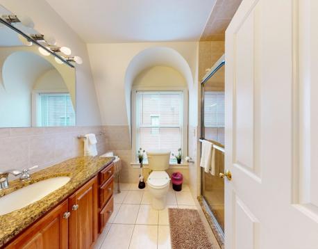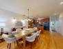 Unique 3Bed 2 bath in the heart of Brookline Village, over 1600 sq ft of living space. Found on the second floor. This townhome offers high ceilings, gleaming hardwood floors and central air. first floor features living room with a sleeper sofa, TV, dining room with dining table, fully equipped kitchen, full bathroom and bedroom with a queen bed. Second floor features french doors that open to a den /bedroom. Queen sized murphy bed with sofa allows guests to use this space as a second living room or private bedroom. Third bedroom features a king bed with views of Brookline Village, full bath and private deck are all found on the second floor. Coin-op laundry located on ground floor of the building.