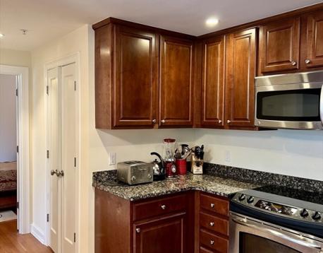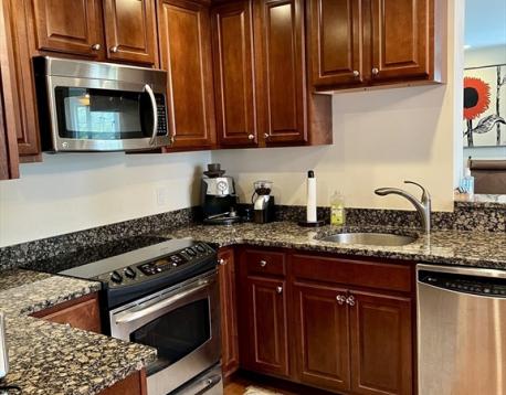 Sunny, spacious, FURNISHED 1 bedroom and 1 bath condo at Longwood Towers near Longwood Medical/Coolidge Corner Area available June 1st! Private views from this 5th floor, west facing, corner residence. Valet garage parking space included. Chef's kitchen with granite counters and stainless steel appliances; large bedroom with walk-in closet; tiled bathroom with tub and shower; washer/dryer in unit with extra storage in the closet; wood floors throughout. Heat, central air, and hot water included in rent. Tenant responsible for electric and cable. Property sited on 4 acres across from Olmsted Park in Cottage Farm estate area on Boston City Line. Convenient to Brigham, Dana Farber, Children's Hospital, Kenmore Sq. Across from MBTA Green Line Station (D Line) Longwood stop with quick access to Back Bay, Midtown, Fenway & Financial District. Complex has Grand Entrance Hall, 24/7 concierge, doorman, fitness center, club room, bike storage &on-site management. Easy to show!