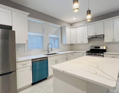 Located in the desirable Coolidge Corner in Brookline, this newly renovated 5bed/3bath condo consists of 2 levels of living space. 1st floor consists of a large master bed with full bath plus a big walk-in closet, 2 other well sized beds and 2nd full bath, a modern, fully applianced eat-in kitchen with granite counters, dishwasher, disposal and microwave, spacious living area with hardwood floors throughout, high ceilings, central A/C. The lower lever offers 2 additional good size bedrooms, a full bath, a kitchenette and a spacious living area. Situated in the heart of Coolidge Corner, it is just minutes from public transits, highway access, walking distance to commuter rail and all the shops and restaurants, 5-15 minutes driving to all the famous universities in the area, including BC,BU,MIT,HMS,HBS etc. Tenants pay for gas and electricity, 2 off-street parking included with additional street parkings available, laundry in-unit.