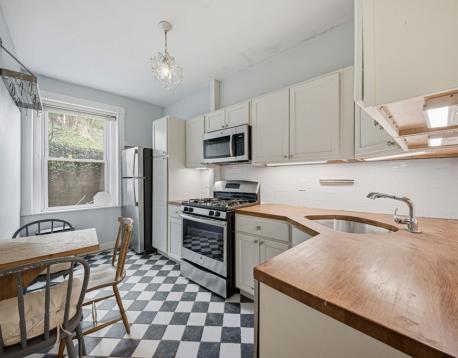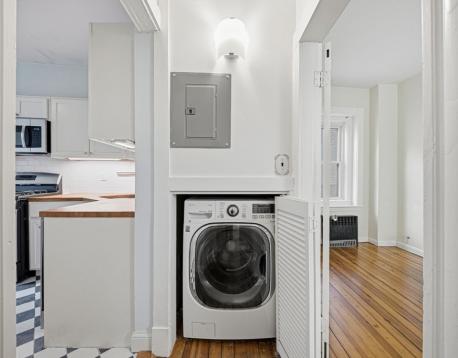 Located near Washington Square and the Green C Line, this first-floor 2-bedroom unit includes a flexible bonus room that can serve as a 3rd bedroom or home office, along with a private patio for relaxing or entertaining. A foyer opens to a comfortable living room and a modern kitchen. Off the kitchen are a back bedroom and the bonus room with direct patio access. The primary bedroom offers good space and a large closet. A recently updated bath and in-unit washer and dryer complete the home. Close to all the conveniences and amenities of Washington Square.