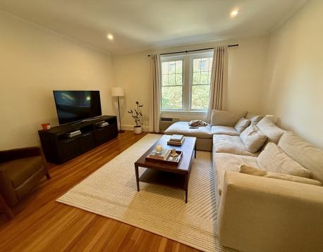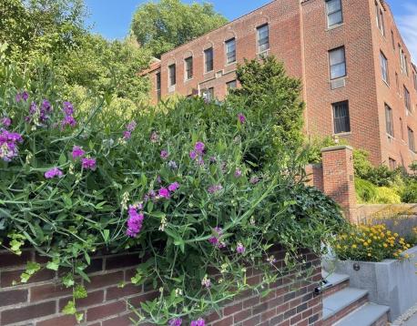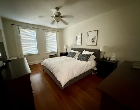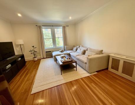 FOR RENT - First floor corner unit at the Terraces! Just blocks to Washington Square's bustling restaurant scene & green line subway (C/D lines). This spacious & renovated 2-bedroom/2 bath home with high ceilings, loads of windows & hardwoods throughout. Highlights include a large living room, separate formal dining room. Modern kitchen with all stainless appliances, gas cooking & granite counters is adjoined by a side balcony for dining al fresco, or for aspiring gardeners! Bedrooms are both well-proportioned and include a master en suite bath. Second full bath has also been remodeled. In-unit washer dryer, 2 wall ACs, cedar closet, private basement storage. One rental parking, heat and hot water included. No smoking + no pets. Amazing walk score 88! Available August 15.