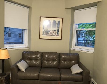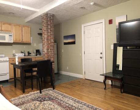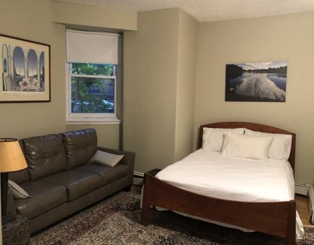 FURNISHED RENTAL. A high first floor, bright and spacious Studio with bay windows, high ceilings & hardwood floors. Full Kitchen and bath all in mint condition. Brand new washer/ drawer combo, electric range top, and refrigerator This unit is furnished with Living room, dining and bedroom furniture and kitchen necessities..Treat yourself by living in vibrant Washington Sq. of Brookline. Near shops and restaurants. Short distance to swimming pool, newly renovated Dean park, with multiple tennis courts. located between the C&D Green line train, it's an Ideal Longwood Medical Area and Downtown Boston and Newton, and easy access to major highways, Rt 9, Rt 128, 495 and Mass pike. Pets are allowed with owners' discretion. Parking is available for rent from the neighbors for $200/mo. Gas included for Hot water.. The unit is one level above street level with a private entrance and patio in the back.