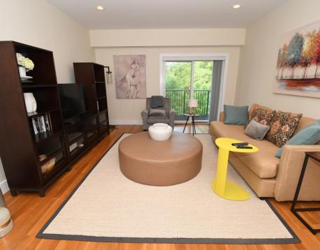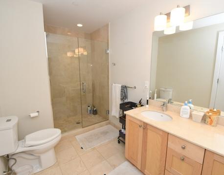 Stunning, Serene Condo Rental in Chestnut Hill with central heat and A/C! Contemporary, sunny, luxury 2 bed, 2 full bath faces tree-lined rear of building! Unit includes in-unit laundry, TWO covered parking spots, outdoor private balcony, and private fitness room. Unit entry leads to open concept kitchen/dining/living room with pantry, granite counters, stainless appliances, gas cooking, and breakfast bar, open to spacious living room with balcony access and tree views. Both large primary and 2nd bedrooms have massive closets. En-suite primary bath has natural stone tiled shower and double vanities while guest bath has with tub/shower. Includes 1 x heated garage parking spot is next to private tenant storage locker AND 1 x covered outdoor spot in back, plus visitor parking & indoor bike storage! Hammond Pond Place is a professionally managed, elevator building. Located near hospitals, malls, grocery, & blocks from public transit. PETS: ESA animals allowed only.