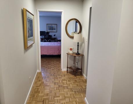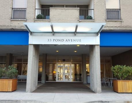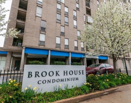 Luxury Brook House, Spacious 2 bedroom/2 bathroom apartment with beautiful pond views, Bonus enclosed balcony that can be used as an office or den, Open floor plan, Large master bedroom with bathroom, Equally large second bedroom, Abundant closet space, 24/7 security/concierge, includes 1 car garage parking space #297, On-site management, Package delivery room, Enjoy a great lifestyle with top notch amenities: full scale fitness center with cardio/weight/exercise rooms, steam/sauna, heated outdoor swimming pool, tennis/pickleball/basketball courts, table tennis, resident lounge with wifi, herb garden and barbecue areas, Across the street from D & E Green train lines and bus lines Close proximity to Brookline Village and Coolidge Corner with an array of many shops, restaurants and a movie theater, Convenient to Longwood Medical area and downtown Boston.