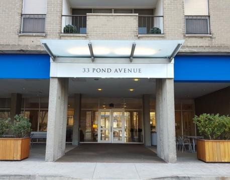 Live in Luxury at the Brook House, Renovated one bedroom apartment overlooking a quiet courtyard, High floor, Fully equipped kitchen with granite countertops, Abundant closet space, Parquet wood floors, Central A/C, One car garage parking, 24 hour security, Top notch amenities include a fitness center with cardio/weight/aerobics rooms, steam/sauna rooms, swimming pool, tennis/basketball courts, ping pong tables, barbecue areas, resident lounge with WiFi, Short walk to bus lines, D & E train lines, Convenient to Longwood Medical area, shops restaurants and Downtown Boston, Beautiful nature surrounds the building including Leverett Pond with walking/jogging/bike paths. Garage parking space #226