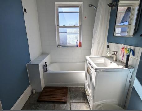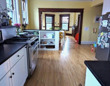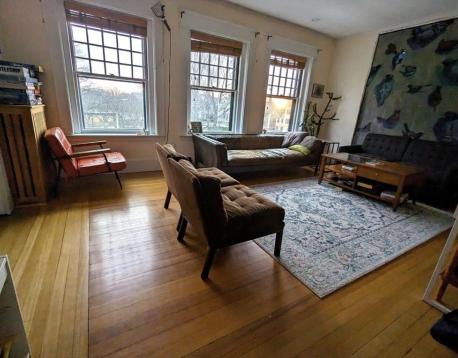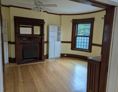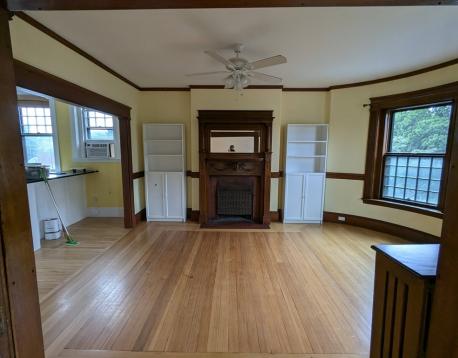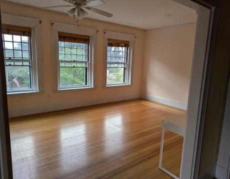 Under a mile walk to Longwood Medical. 2-3BR, 1.5 bathrooms. Large updated kitchen, in-unit washer/dryer, large dining room with wood burning fireplace, pocket doors open to large living room, 3rd level/top floor unit, with private rooftop deck with sunset views. Great apt. flow and lots of natural light. 2 bedrooms fit a king bed, 1 bedroom fits twin bed or suitable for office. A/C window units & ceiling fans. Great basement storage. Rent includes heat & hot water. Outdoor parking +$200/month. Cat allowed. Enjoy all Brookline Village has to offer and just 10-15 walk to Coolidge Corner and Washington Square. All offer fabulous restaurants, cafes, shops, gyms, artist community, beautiful parks. Indoor Brookline Town pools (lane, dive & splash pools) about a 10 minute walk. Back Bay & downtown Boston just a few T stops from Brookline Village station.