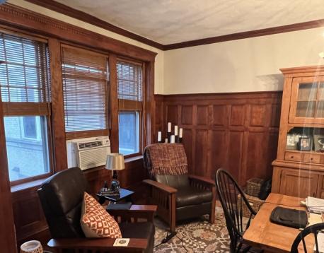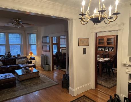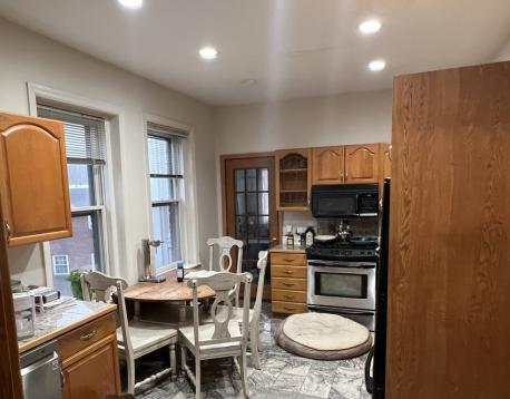 Mere steps from the C or D line, this unit boasts gorgeous detailing including a fireplaced foyer, mahogany wainscoting in the formal dining room, HUGE kitchen with adjacent mud room, 2 full baths including a master bath with jacuzzi! Laundry in the unit, parking is included behind the building and heat/hot water is included in the rent.