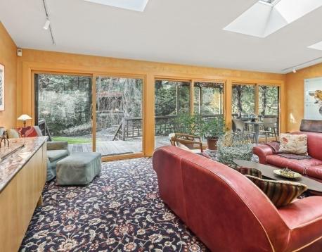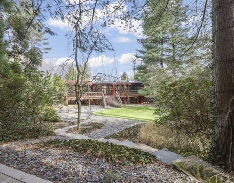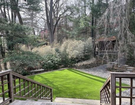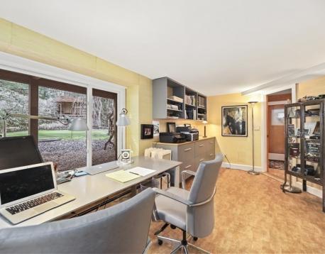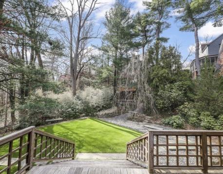 Short term furnished summer rental on Historic Pill Hill in Brookline. One of a kind, art filled contemporary home is an oasis of calm near the bustling city. Soaring ceilings & incredible natural light define the main living area including large living room w fireplace & piano, and a dining room that is open to chefs kitchen. The back of the living room is a wall of glass w doors that open to an expansive deck overlooking an amazing & very private backyard w spectacular landscaping and its own Japanese tea garden. Main level also has a bedroom wing w primary suite, two additional offices or guest spaces, and another full bath. Lower level has a media room, guest suite, home office w more amazing views of the yard, third full bath, home sauna, and access to two car garage. Convenient to everything: Minutes to Brookline Village, Longwood medical area, Coolidge Corner, Route 9 and D & E subway lines into Boston. Minutes to the Emerald Necklace walking & bike paths as well.