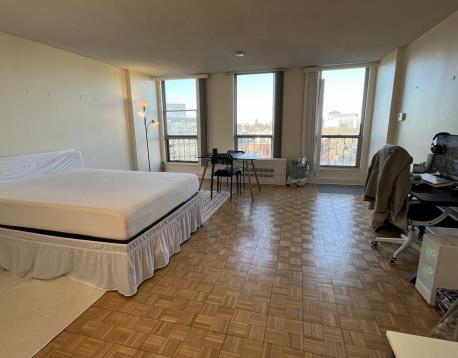 Penthouse studio available for rent at the Brookhouse. Unit features central AC, hardwood floors, heat and hot water included. Spectacular views of Boston. The Brookhouse is a full service luxury building that has a heated swimming pool, 24 hour security, tennis courts, gym, club room. Garage parking available for additional $200 dollars. Centrally Located less then a 1/2 a mile from Longwood, D & E line across the street, Easy to get into the Boston, Route 9, coffee shops, supermarkets.