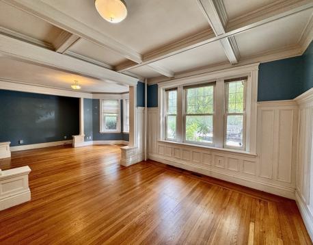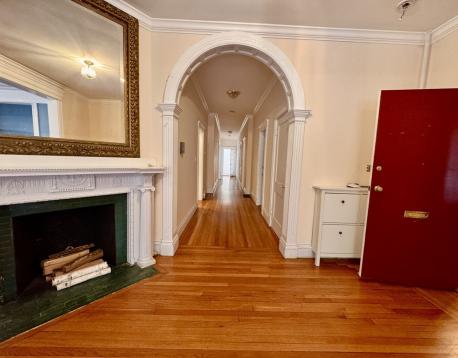 Beautiful one of kind a Back Bay style brownstone with approximately 2,500sf of living space on the 1st floor, steps to the Brookline Reservoir. Property features include 10 rooms with a warm welcoming foyer, formal dining room with coffered ceiling, living room, family room with working fire place, 4 bedrooms, kitchen with butlers pantry, 2 full baths, 4 season sunroom and laundry in unit. Finishes include period details with dramatic 12ft ceilings with crown moldings throughout, hardwood flooring. This unit includes 2 off street parking spaces. Located in Brookline Hills near Washington Sq. and Brookline Village, the property resides in the Runkle School District. It's a short walk to the D line, Brookline High as well as public transportation to Longwood hospitals. *****Rent includes hot water & 2 parking spot******* Central A/C.********Intercom in unit****